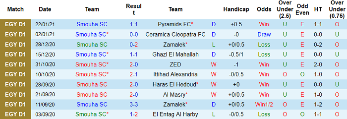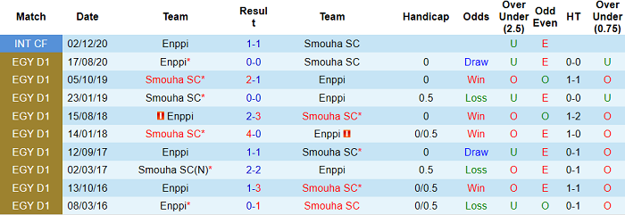 Tiếp đón ENPPI Cairo trở thành cơ hội để Smouha Club kéo dài chuỗi thành tích bất bại của mình. Smouha Club đang sở hữu chuỗi 11 trận bất bại trước ENPPI Cairo. 6 lần so tài gần nhất thuộc khuôn khổ giải VĐQG Ai Cập, Smouha đều không thua và có được 3 chiến thắng.
