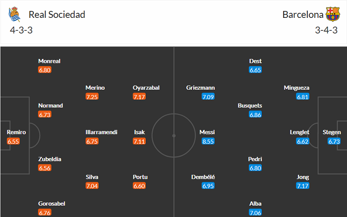 Phong độ và thống kê đối đầu Sociedad - Barcelona