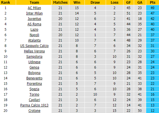 Nhưng mùa này CLB áo sọc đỏ đen đã hồi sinh mạnh mẽ, với dàn sao trẻ đầy nhiệt huyết cùng đầu tàu Ibrahimovic. Các học trò của Stefano Pioli đang chễm trệ ở ngôi đầu, phía trên gã hàng xóm Inter và hơn nhà ĐKVĐ Juventus tới 7 điểm. Cánh cửa tới chức vô địch dần rộng mở với AC Milan, khi họ vẫn kịp đứng dậy sau mỗi lần vấp ngã.