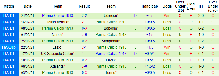 + Thống kê 10 trận gần nhất của Parma