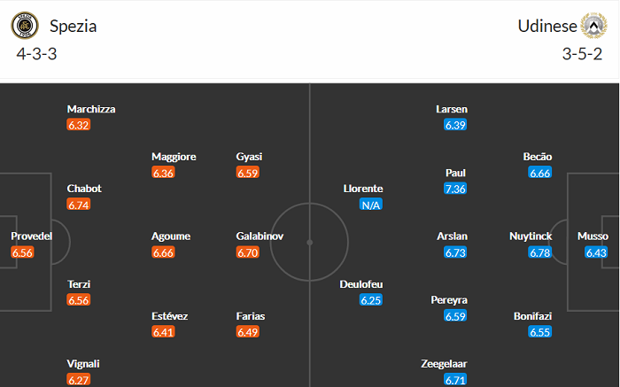 Spezia không có được thành tích tốt trên sân nhà: không thắng 8/9 trận sân nhà kể từ khi Serie A 2020/21 khởi tranh. Tuy nhiên, do Udinese đã sa sút trong thời gian gần đây nên Spezia hứa hẹn có điểm vào Chủ nhật (31/).
