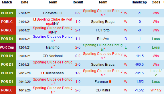 + Thống kê 10 trận gần nhất của Sporting Lisbon