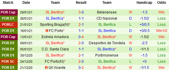 + Thống kê 10 trận gần nhất của Benfica