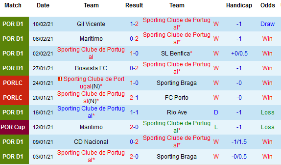 + Soi tỷ lệ kèo châu Á: Trong 10 trận đối đầu toàn thắng gần đây, Sporting Lisbon đã có tới 8 lần vượt qua tỷ lệ châu Á. Đội chủ nhà cũng rất đáng tin với liên tiếp 6 trận vừa qua đều thắng kèo.