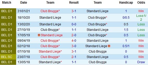 + Soi tỷ lệ kèo châu Á: Mặc dù được chơi trên sân nhà nhưng Standard Liege vẫn bị đẩy xuống chiếu dưới với tỷ lệ được chấp 1/2. Đây là chỉ số cao nhất trong 12 lần đối đầu sân khách gần nhất của Club Brugge.