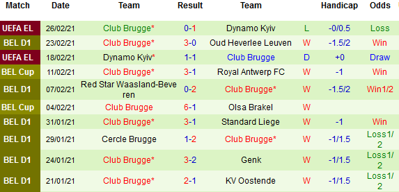 + Thống kê 10 trận gần nhất của Club Brugge