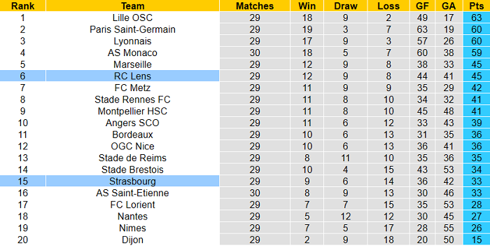 Nhưng dù sao đi nữa, Lens vẫn ổn định hơn đáng kể so với Strasbourg. Strasbourg phải nhận 2 thất bại từ 6 vòng vừa qua còn Lens không hề thua trong cùng khoảng thời gian. Sự ổn định ấy hứa hẹn trở thành chìa khóa giúp Lens ca khúc khải hoàn vào Chủ nhật (21/3).