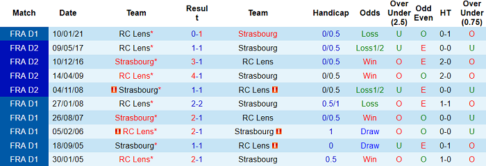 Phong độ và thống kê đối đầu Strasbourg - Lens