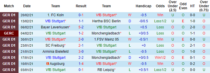 + Thống kê 10 trận gần nhất của Stuttgart