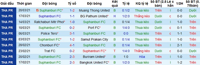 + Soi tỷ lệ kèo châu Á: Mặc dù được chơi trên sân nhà nhưng với vị thế kém hẳn so với đối thủ cũng như phong độ yếu kém nên Suphanburi FC vẫn bị coi là đội cửa dưới.