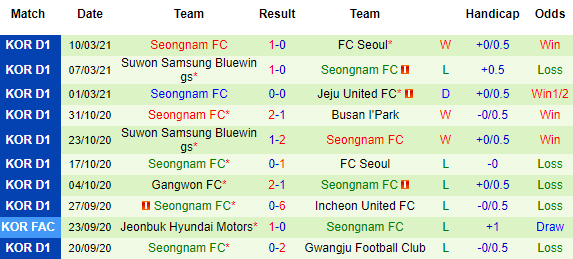 Nhìn xa hơn, từ cuối mùa trước đến nay thì Seongnam thi đấu khá ổn với 4/5 trận bất bại vừa qua. Bên cạnh đó, họ cũng nhận được sự ủng hộ từ lịch sử khi thắng cả 2 lần gần nhất ghé thăm sân của Suwon, đó đều là những trận cầu thuộc giải hạng 2 của năm 2018.