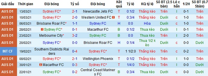 + Thống kê 10 trận gần nhất của Sydney FC