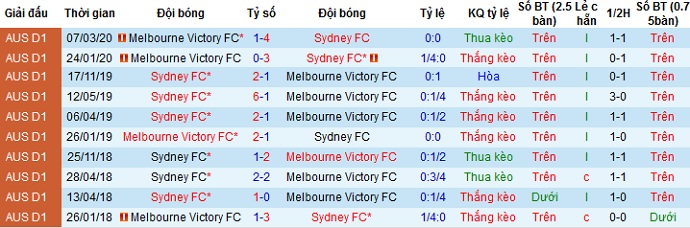 Tỷ lệ kèo Sydney FC vs Melbourne Victory