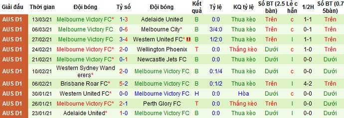 + Thống kê 10 trận gần nhất của Melbourne Victory