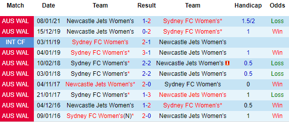+ Lịch sử đối đầu Sydney (W) vs Newcastle Jets (W)