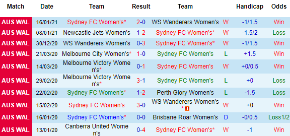 + Thống kê 10 trận gần nhất của Sydney (W)