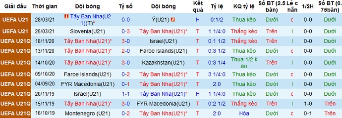 + Soi tỷ lệ kèo châu Á: Với vị thế là đội đầu bảng đồng thời có được phong độ khá ổn định nên Tây Ban Nha U21 được đánh giá là đội cửa trên cũng là điều hợp lý. Tuy nhiên kèo chấp ở mức khá cao là -1.