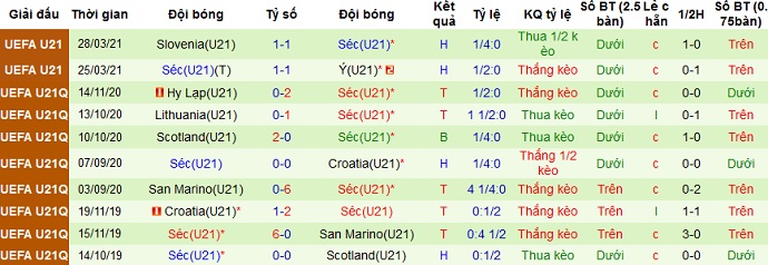 + Thống kê 10 trận gần nhất của CH Czech U21