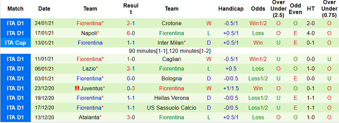 - Thống kê 10 trận gần nhất của Fiorentina
