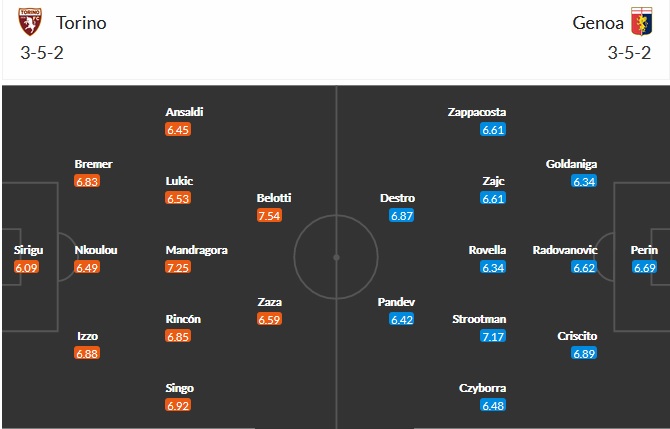 Lý do là bởi trong 7 lần đối đầu gần nhất giữa hai đội thì Torino đang thắng tới 6 trận và hòa trong trận còn lại. Tuy nhiên hiện tại phong độ của Torino đang khá tệ, trái lại Genoa lại có phong độ đang lên nên chọn cửa dưới ở trận đấu này vẫn là sự lựa chọn hợp lý.