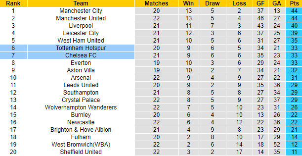 Vắng Dele Alli và Harry Kane vì chấn thương, Tottenham đang bế tắc trong tấn công và toàn thua 2 trận gần đây. Trong khi đó Chelsea dưới thời Thomas Tuchel đang cho thấy sự khởi sắc, giành 4 điểm trong vòng 2 trận vừa qua, ghi 2 bàn mà không để thủng lưới lần nào.