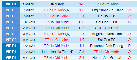+ Thống kê 10 trận gần nhất của TP.HCM