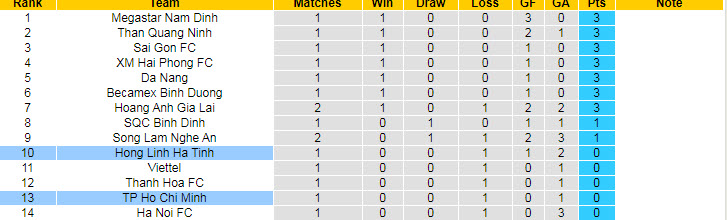 Phong độ và thống kê đối đầu TP.HCM vs Hồng Lĩnh Hà Tĩnh gần đây: