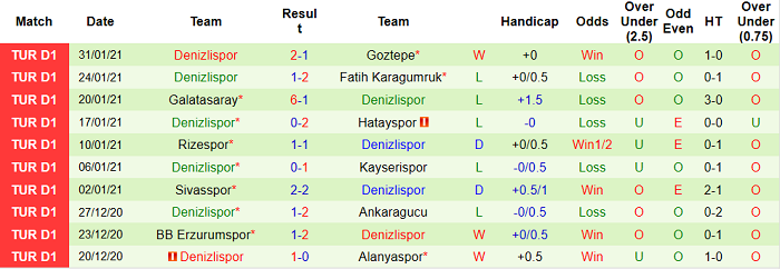 2/3 thất bại gần nhất của Denizlispor có cách biệt từ 2 bàn trở lên. Nhiều khả năng họ sẽ phải nhận thất bại với cách biệt tương tự trước ‘khắc tinh’ mang tên Trabzonspor.