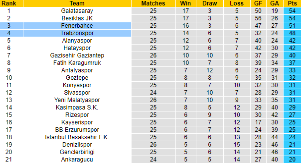 Trận cầu này được coi là tâm điểm của vòng 27, khi đôi bên đang có mặt trong top 4 và rộng cửa tranh vé dự Champions League, thậm chí vẫn có hy vọng bắt kịp đội đầu bảng Galatasaray. Khoảng cách giữa đôi bên chỉ là 3 điểm, con số sẽ bị san lấp nếu như Trabzonspor đánh bại đối thủ trận này.