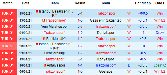 + Thống kê 10 trận gần nhất của Trabzonspor