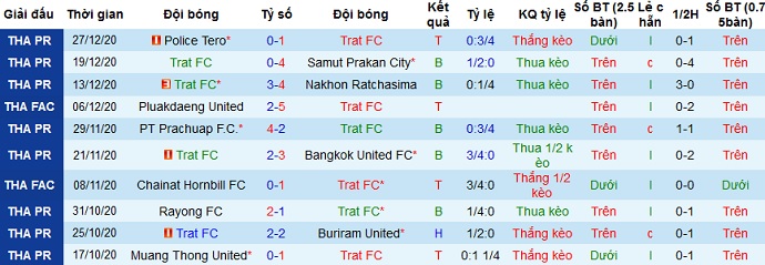 Trong 5 trận gần nhất Trat FC có được 2 trận thắng, để thua 3 trận, tính cả trận thắng tại vòng hai FA Cup. Thế nhưng ngay trên sân nhà thành tích của đội bóng lại rất tệ khi đã không thắng 15 trận gần nhất tại đây. Thậm chí trong 9 trận gần nhất Trat FC chỉ có được 1 trận hòa.