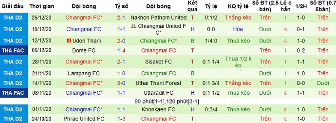 Trong 5 trận gần đây Chiangmai United cũng có được 3 trận thắng, để hòa 1 và thua 1. Thành tích sân khách của đội bóng cũng không quá tệ với 3 trận thắng và 2 trận thua ở 5 lần du đấu gần nhất.