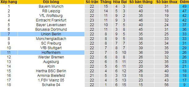 Mặc dù Union Berlin mới có năm thứ 2 được thi đấu ở đấu trường cao nhất nước Đức nhưng những gì họ thể hiện thời gian qua là tương đối thuyết phục. Sau 22 vòng đấu, đội chủ nhà có được 33 điểm và xếp thứ 7 trên BXH.