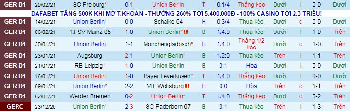 + Thống kê 10 trận gần nhất của Union Berlin