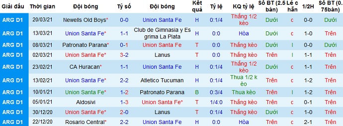 + Thống kê 10 trận gần nhất của Unión Santa Fe