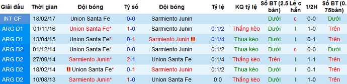Trong 4 lần gặp nhau gần nhất khi Unión Santa Fe được thi đấu trên sân nhà đội bóng chỉ giành chiến thắng đúng 1 lần, hòa cả 3 trận còn lại. Thế nên với phong độ không thật tốt của Unión Santa Fe vào thời điểm hiện tại, có lẽ chọn đội khách Sarmiento Junín sẽ có phần hợp lý hơn.