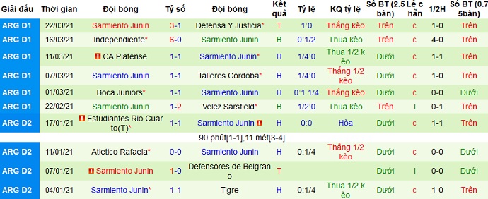 + Thống kê 10 trận gần nhất của Sarmiento Junín