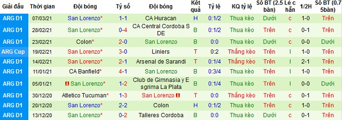 + Thống kê 10 trận gần nhất của San Lorenzo