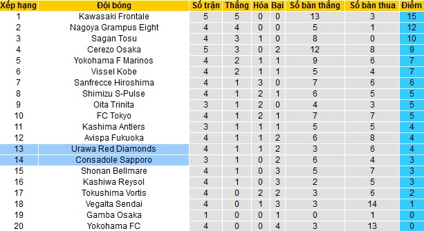 Bảng xếp hạng J-League vòng 5