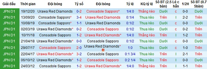 Tỷ lệ kèo Urawa Red Diamonds vs Consadole Sapporo