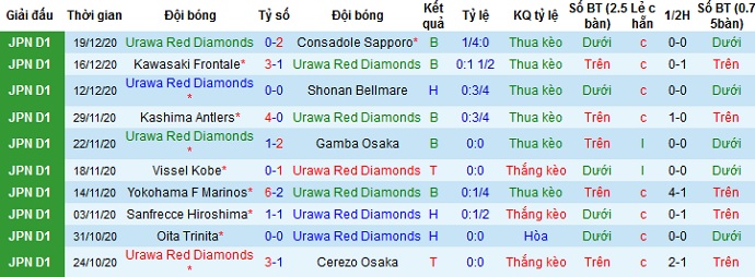 + Thống kê 10 trận gần nhất của Urawa Red Diamonds