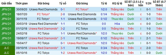 Trong mùa giải trước FC Tokyo đã vượt qua Urawa Red Diamonds trong cả 2 lần đối đầu. Với phong độ và tinh thần đang lên của các cầu thủ khách nên chọn cửa trên ở trận đấu này có phần hợp lý hơn cả.