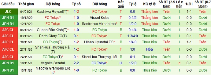+ Thống kê 10 trận gần nhất của FC Tokyo