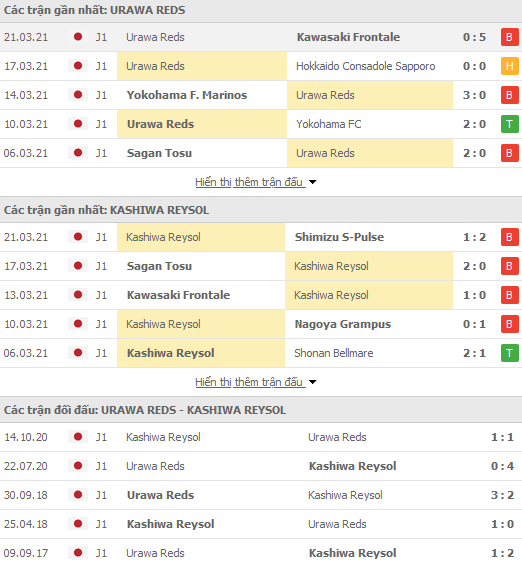 Phong độ và thống kê đối đầu gần đây Urawa Reds vs Kashiwa Reysol: