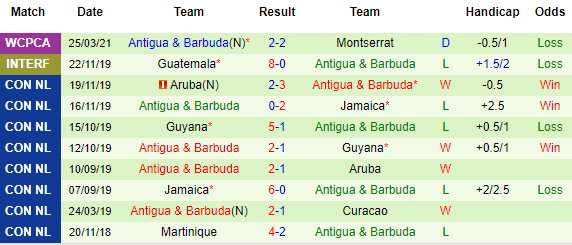 + Thống kê 10 trận gần nhất của Antigua & Barbuda