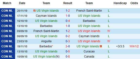 US Virgin Islands quá yếu và màn trình diễn thời gian qua của họ cũng nói lên điều đó. 4 trận gần nhất dù chỉ gặp những đối thủ không quá mạnh như US Virgin Islands cũng toàn thua. Trước các đội bóng có đẳng cấp hơn thì họ đều thất bại thảm hại.