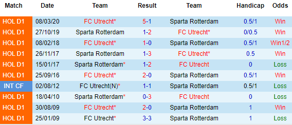+ Lịch sử đối đầu Utrecht vs Sparta Rotterdam