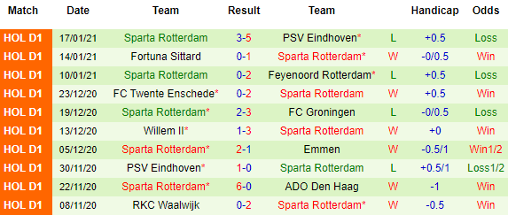 5 vòng liên tiếp vừa qua, Sparta Rotterdam cứ sau 1 thất bại lại có 1 chiến thắng, rõ ràng là rất bất ổn. Còn với Utrecht, 5 vòng mới đây họ cũng chỉ có 2 trận thắng cùng 1 thất bại. Nhưng về phương diện đối đầu thì Utrecht hoàn toàn vượt trội với việc toàn thắng 8 trận chính thức vừa qua (không tính giao hữu).