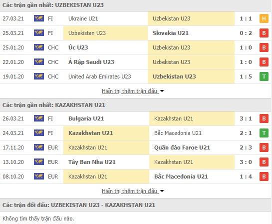 Phong độ và thống kê đối đầu Uzbekistan U21 vs Kazakhstan U21