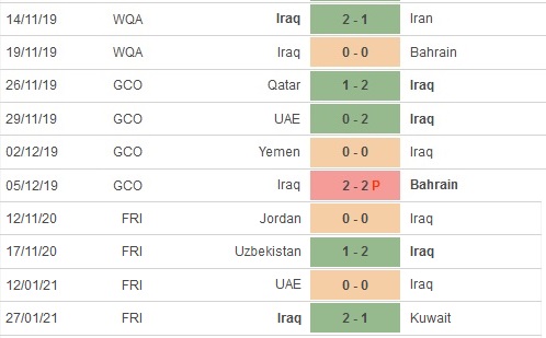 + Thống kê 10 trận gần nhất của Iraq